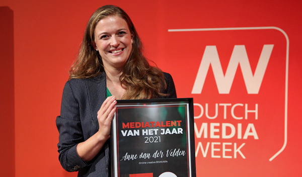‘In het steeds sneller veranderende medialandschap wordt het steeds belangrijker om mediatalent te vinden dat de vertaalslag van lineair naar digitaal écht goed weet te maken. Anne van der Velden is zo iemand en in haar doen en laten vormt ze de mediamaker van de toekomst. Tackelt ieder mogelijk format, heeft een ongelooflijke arbeidsethos en is daarnaast ook nog eens érg aardig. Iets dat vaak opvalt in de toch niet altijd zo brave mediawereld: Anne laat dagelijks zien dat kindness kan killen en dat een positieve attitude altijd naar de beste oplossingen leidt.’