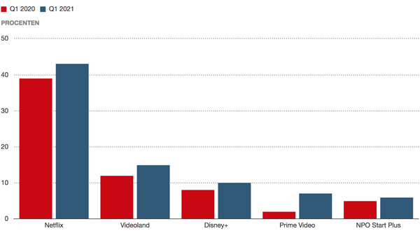 De snelste groeier is Amazon Prime Video, dat het marktaandeel meer dan verdubbeld heeft. Amazon heeft daarnaast grote plannen met zijn videodienst: onlangs kocht het voor bijna 7 miljard euro filmstudio MGM, onder meer bekend van de James Bond-films.