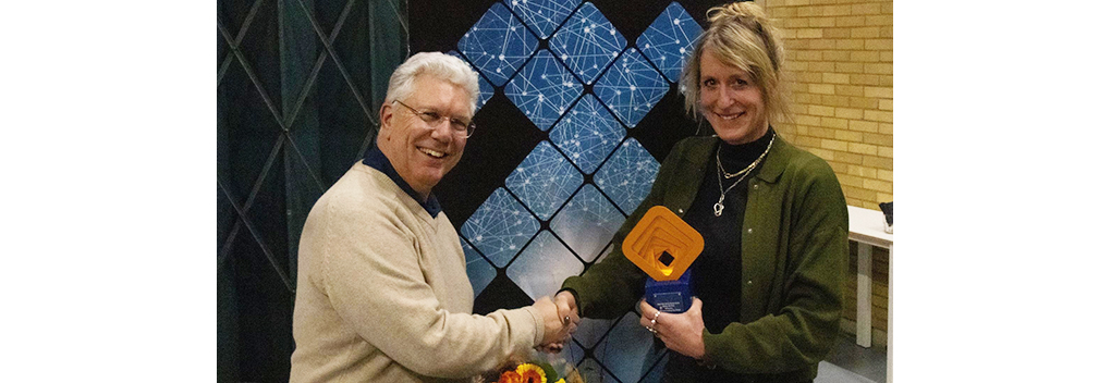 Foto: Jolanda Dekker nam namens KRO-NCRV de NPO Innovatie Award 2025 in ontvangst. De award werd uitgereikt door Egon Verhagen.