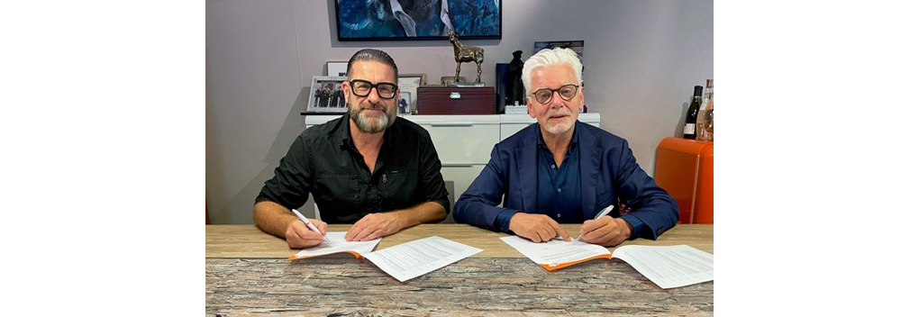 Foto: Jurgen van den Berg tekent contract met Jan Slagter van Omroep MAX