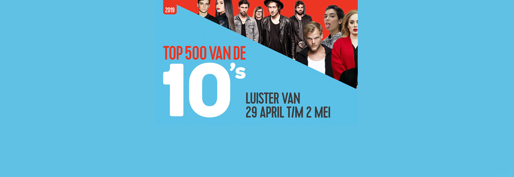 Dat doet Qmusic van maandag 29 april tot en met donderdag 2 mei met de Top 500 van de 10’s. Luisteraars hebben massaal hun favorieten ingestuurd. De lijst is vier dagen lang tussen 6.00 en 19.00 uur te horen op de radiozender. Vorig jaar stond Wake me Up van Avicii op de eerste plaats, gevolgd door Perfect van Ed Sheeran en Hey Brother van Avicii. Wie er dit jaar op 1 staat, wordt donderdagavond bekend.