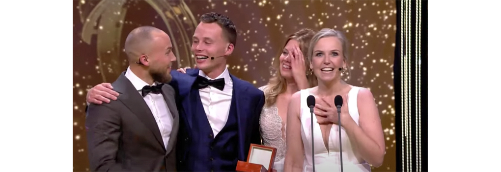 Villerius en de Ruinerwold-kinderen kregen live in Carré de Gouden Televizier-Ring uit handen van Olympisch kampioene Sifan Hassan.