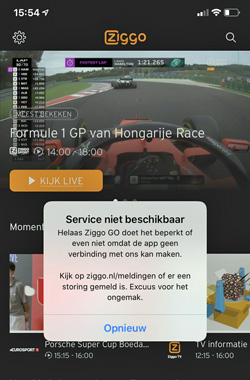 Ziggo GOVeel kijkers die de race wilden volgen via de Ziggo GO-app klaagden overigens dat de stream niet beschikbaar was. Waarschijnlijk kon de app het grote aantal online kijkers niet goed aan.