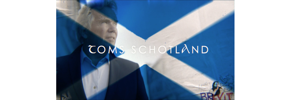 Tom doorkruist in deze nieuwe zesdelige serie met zijn blauwe oldtimer het prachtige landschap en zoekt in Toms Schotland naar mooie verhalen en ontmoetingen om zo de Schotse, autonome ziel beter te doorgronden. Het programma is vanaf zondag 6 februari elke week om 20.25 uur te zien op NPO 2. Toms Schotland is geproduceerd door Blazhoffski en geregisseerd door Finbarr Wilbrink.