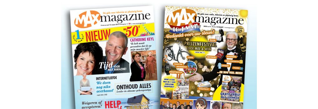 MAX Magazine, het wekelijkse tv- en lifestylemagazine van Omroep MAX, viert komende week z’n 10-jarig bestaan. ‘Dé gids voor radio, tv en plezierig leven’ is inmiddels uitgegroeid tot het grootste weekblad van Nederland.