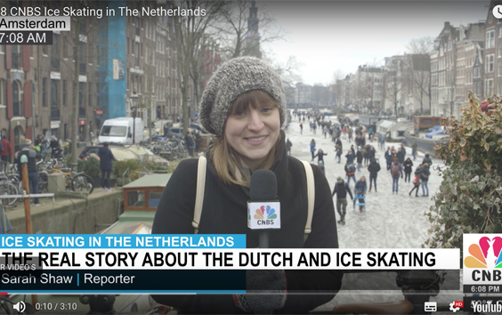 Een actrice van het gezelschap Boom Chicago deed zich daarbij voor als tv-verslaggever die op de Prinsengracht een reportage maakte over de schaatskoorts in Nederland.
